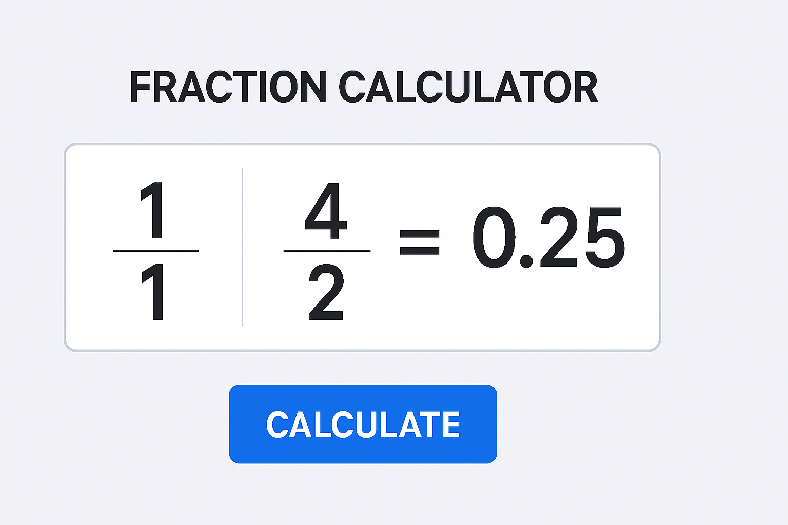 - Two fraction inputs (numerator & denominator for each).